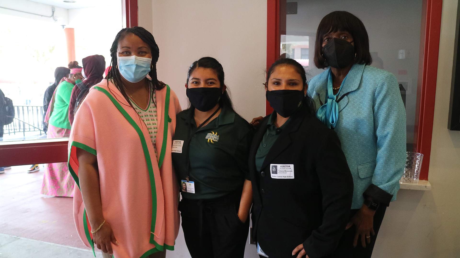 (From left) Glades Central High School Principal Melanie Bolden-Morris, Rosa Garcia-Castrejon, Tatiana Messerole and Palm Beach County School Board Member Marcia Andrews at the Claim Your Future Showcase at Glades Central on Feb. 15. Tatiana appeared on a panel alongside other business leaders in the Glades region to discuss career options for students.